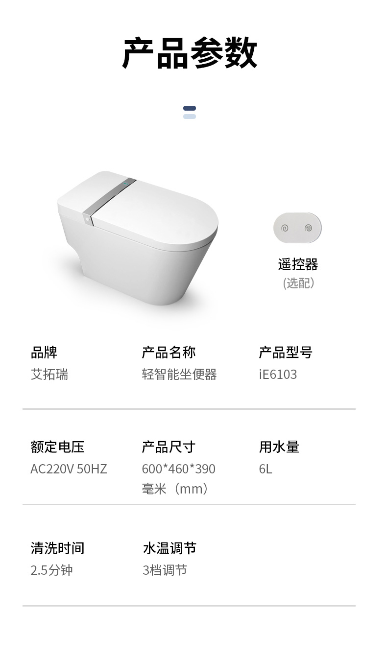 產(chǎn)品型號(hào):iE6103 智能馬桶